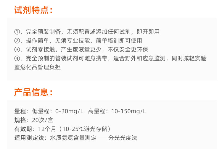 一支一個水樣,省去繁瑣的配置過程,讓實驗員減少接觸危險化學品,更加安全可靠,非專業人員培訓5分鐘,即可輕松上手